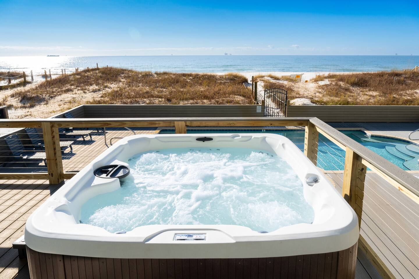 Congratulations! You’ve found one of the best beaches in Gulf Shores, located on the scenic Fort Morgan Peninsula. Here, you can enjoy the best of both worlds: the beautiful, wide-open beaches and the calm waters of Mobile Bay behind you. Whether you're soaking in the sun on the Gulf of Mexico’s shores or exploring the tranquil bay, there’s something special about this area. Food recommendations: Tacky Jack's Fort Morgan - Just 4min away, this restaurant has a fun, family friendly atmosphere with great views of Mobile Bay. We love their fish tacos and crab claws. There is often live music and events, and our kids love their porch swings. Lulu's Gulf Shores - No trip to Gulf Shores is complete until you enjoy a meal at Lulu's. With a fun outdoor sand play area, arcade, ropes course, bar, live music, and a gift shop, there is something for everyone. Jesse's on the Bay - If you are craving a good steak or oysters, definitely stop by Jesse's. This classy restaurant has some of the best food in Gulf Shores. Bahama Bob's - Right on the beach, this restaurant is another great spot. I try to make a stop here every time we visit to get the pecan crusted flounder. The Hangout - More than just a restaurant, the Hangout is the place for good food and family fun. The restaurant features full-service dining, beach access, a courtyard with a sand pile, foam pit, games, fire pit, and stages for live music. Entertainment: The Track - Fun for all ages, The Track provides rides, thrills and laughter. Enjoy go karts, family rides, arcade games, putt-putt and more! The Wharf - The Wharf at Gulf Shores is a vibrant, waterfront entertainment complex located along theIntracoastal Waterway in Gulf Shores, Alabama.Known for its lively atmosphere, the Wharf boasts a ferris wheel, amphitheater, marina, park, and many dining, shopping and entertainment options. Kiva Dunes Public Golf Course - Located just 5 minutes away, Kiva Dunes Golf Course is one of the premier golf destinations on the Gulf Coast. Known for its stunning natural beauty, challenging design, and coastal charm, it offers a memorable experience for golfers of all skill levels. Alabama Gulf Coast Zoo - The Alabama Gulf Coast Zoo is a popular wildlife destination offering visitors a chance to experience a variety of animals up close. This family-friendly facility is known for its commitment to animal care, conservation, and educational programs. On the Water: Dolphin and Sailing Tours- Cetacean Cruises offer an unforgettable way to explore the marine beauty of the coast while encountering playful dolphins and other wildlife.These tours combine the thrill of sailing with the excitement of observing dolphins in their natural habitat, providing guests with a unique opportunity to connect with nature. Blue Sky Parasailing- Offering thrilling aerial adventures, Blue Sky gives visitors the chance to soar high above the sparkling waters of the Gulf of Mexico for breathtaking views and unforgettable experiences. Fort Morgan Fishing Charters- Fort Morgan fishing charters offer guided fishing trips in the Gulf of Mexico, Mobile Bay, and surrounding waters. These charters cater to anglers of all skill levels, providing opportunities to catch species like redfish, speckled trout, snapper, and mackerel. A2Z Powersports: A2ZPowersport Rentals offers a wide selection of high-quality outdoor recreational vehicles, providing adventure enthusiasts with the perfect equipment for thrilling experiences on land and water. Historical Sites: Fort Morgan Historical Site - Visiting the Fort Morgan Historic Site is a great way to explore history while enjoying the beauty of Alabama's Gulf Coast. Fort Morgan, located at the entrance to Mobile Bay, played a significant role in the history of the United States, especially during the Civil War. USS Alabama - The USS Alabama (BB-60) is a retired U.S. Navy battleship that now serves as a museum and memorial in Mobile, Alabama. The ship is moored at Battleship Memorial Park, a popular tourist destination, and offers an immersive experience for visitors interested in naval history and WorldWar II.