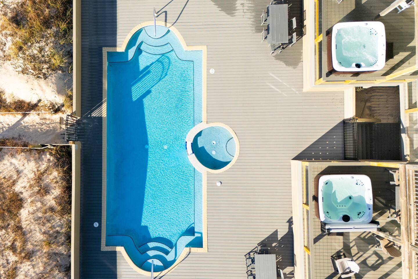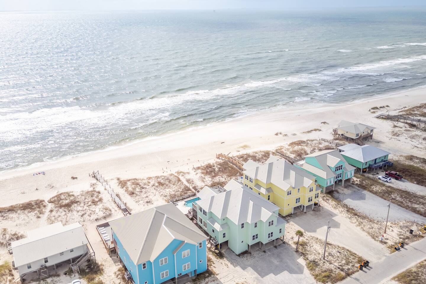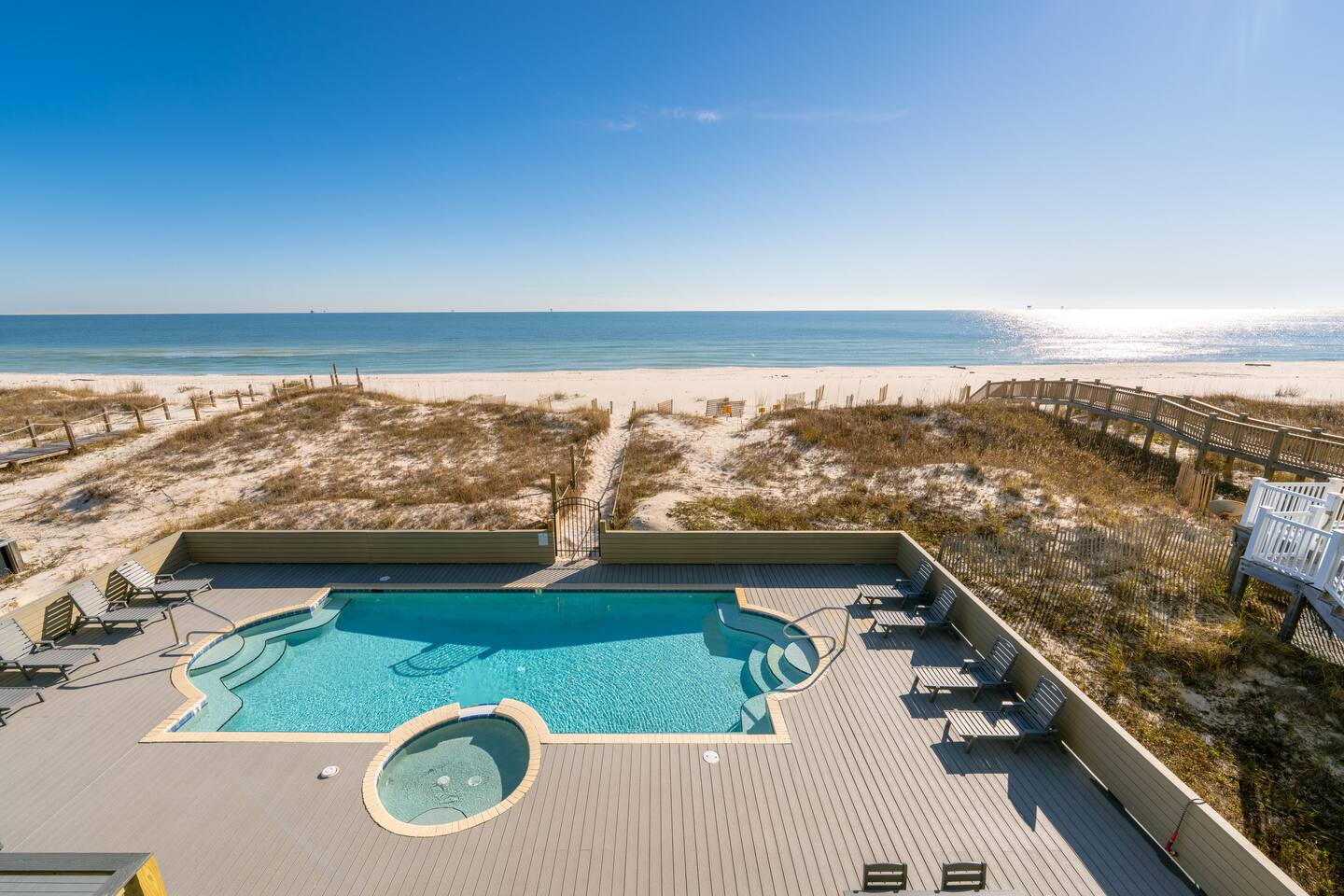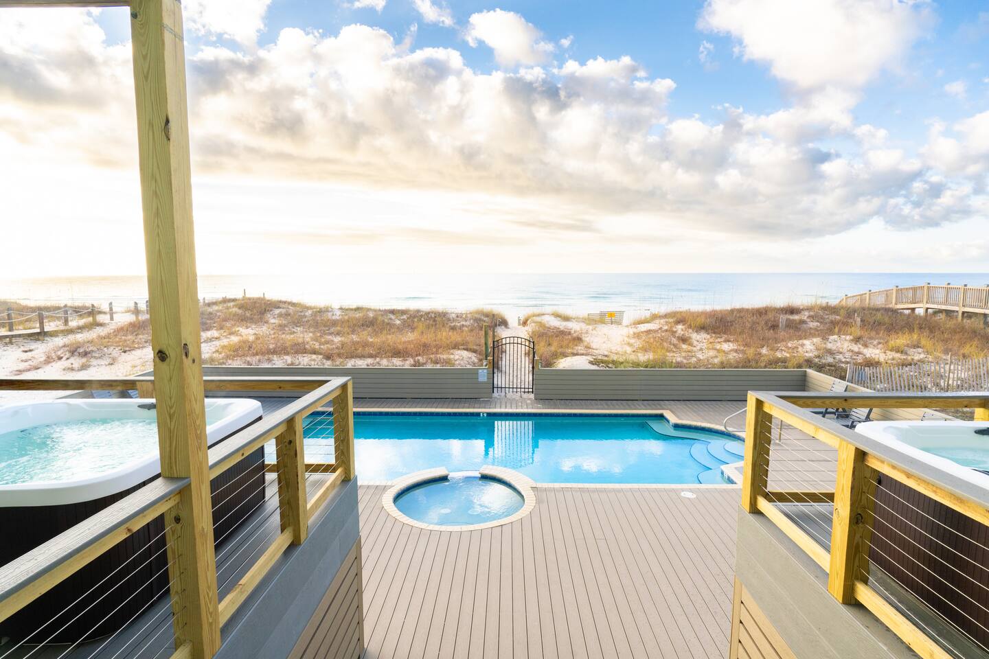 Beach+Pool+Hot tub! Relax by the pool or step right out onto the white sandy beach in this spacious 6 bedroom home. With 4 king beds, 4 twin beds, and 2 full beds, it is perfect for families or large groups of friends. The three bathrooms are equipped with everything you need for your stay. Kickback, relax, and enjoy everything Gulf Shores has to offer.