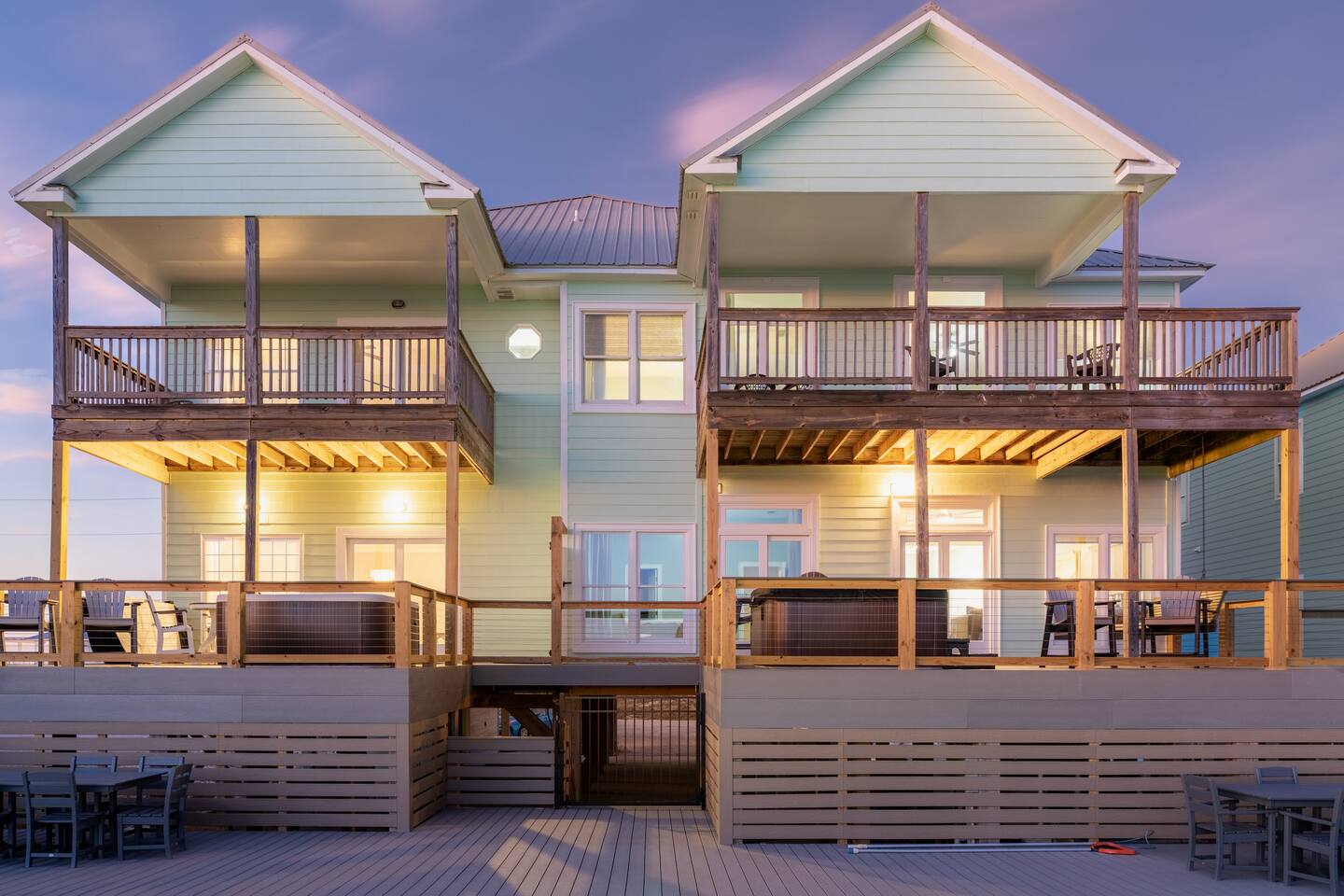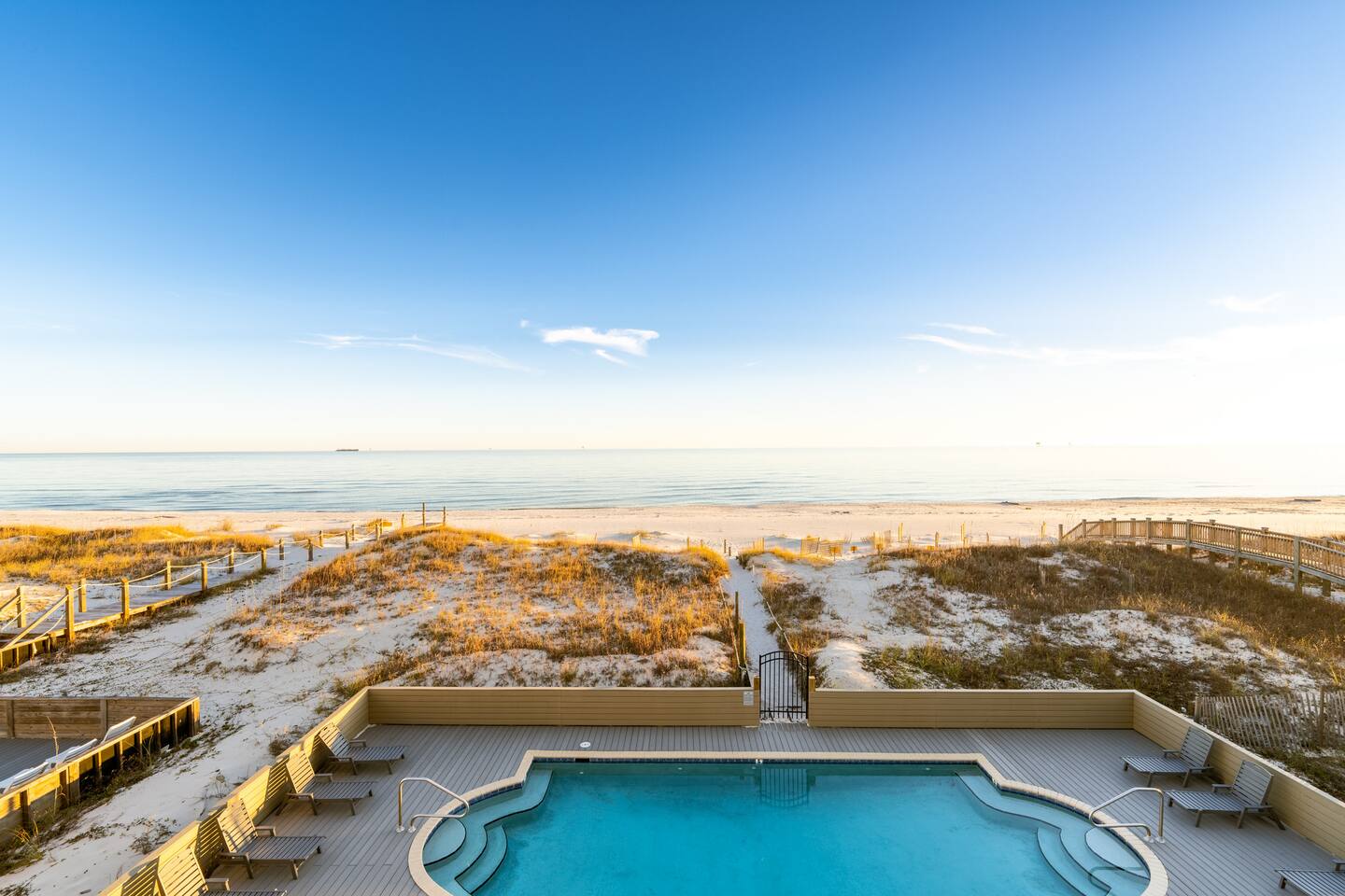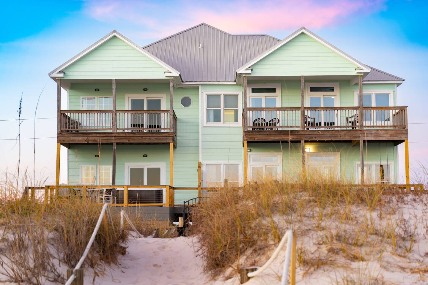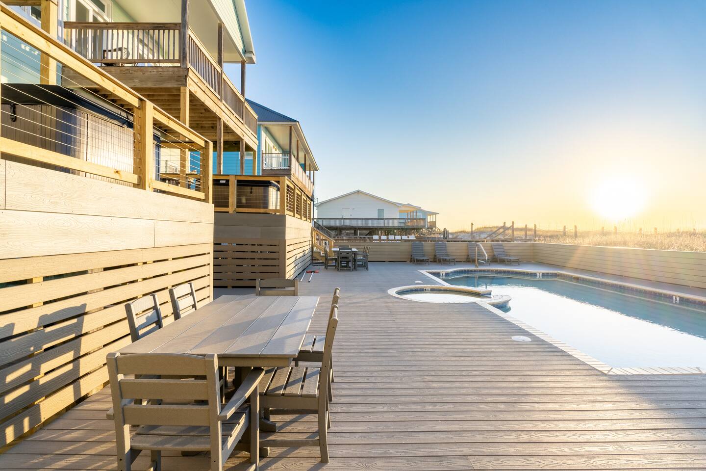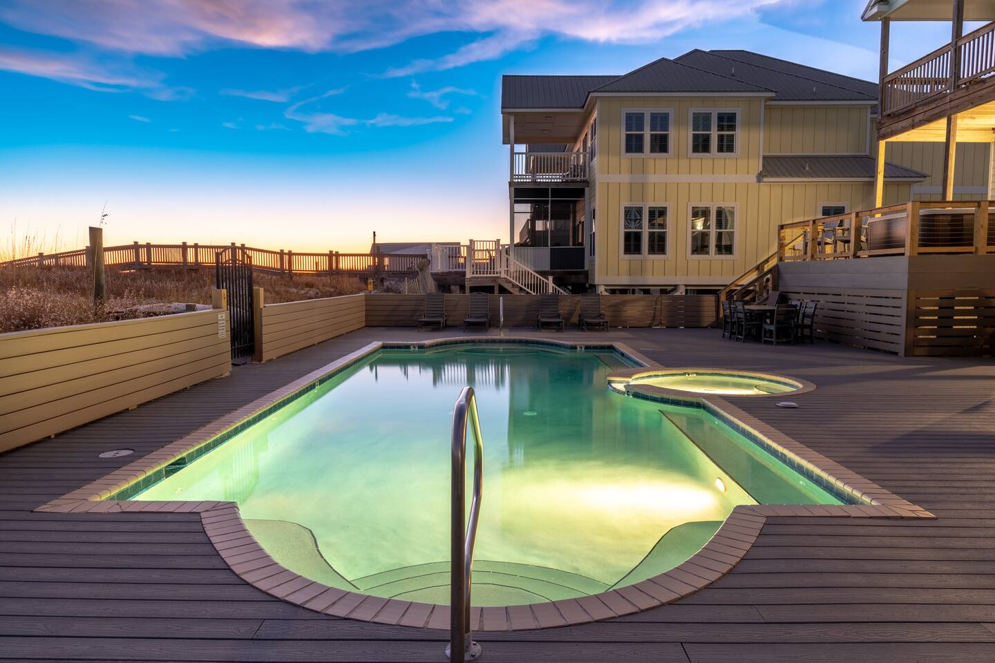 Beach+Pool+Hot tub! Relax by the pool or step right out onto the white sandy beach in this spacious 6 bedroom home. With 4 king beds, 4 twin beds, and 2 full beds, it is perfect for families or large groups of friends. The three bathrooms are equipped with everything you need for your stay. Kickback, relax, and enjoy everything Gulf Shores has to offer.