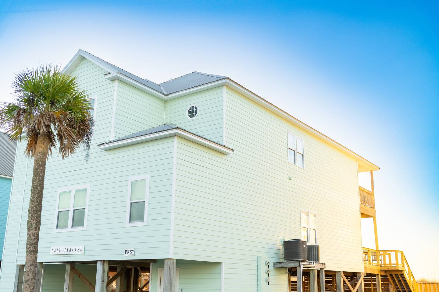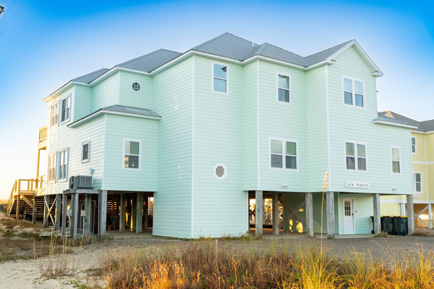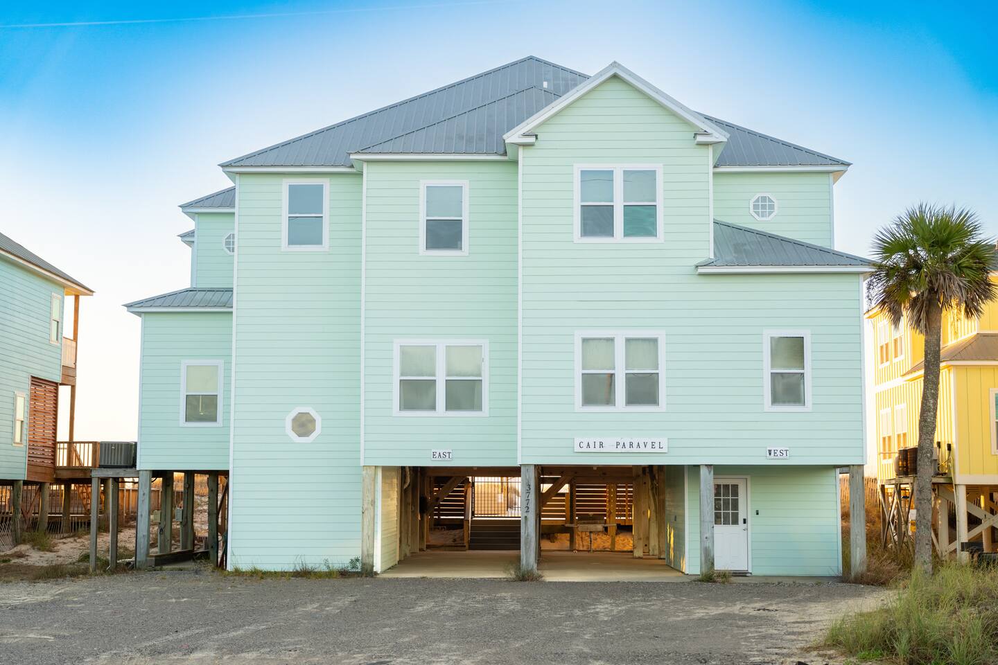 Located on the serene Gulf of Mexico beach in quiet Fort Morgan (outside of Gulf Shores), Cair Paravel West offers amazing views and the convenience of vacation-goers' dreams. Uniquely situated, the property offers spectacular views of both the Gulf and Mobile Bay and has 6 Bedrooms and 3 Full Bathrooms. The property, located on the west side of the duplex, was renovated in 2021. Cair Paravel West shares a large pool and pool deck with the other side of the duplex, Cair Paravel East. Convenience is key with the pool and the beach just steps from the house. The pool deck is large enough to serve meals, play games and soak up the sun. Swim laps or just lounge in the huge pool while the little ones enjoy the small wading pool attached to it. A short boardwalk leads directly to the open, white sand where you can set up an umbrella or tent and chairs, kayak, fish, search for sea shells, or just relax on the beach. The first level of the house includes the large, open living area, fully-equipped kitchen and dining area, as well as two bedrooms and a full bathroom. First level bedrooms include one king bed and full-size bunk beds with views of the Mobile Bay. The first level opens onto a screened in porch and sunning porch. The second level of the property includes four bedrooms and two baths, with 3 king beds and 4 twin bunk beds. The Master Bedroom is located on this level and offers unbeatable views of the Gulf of Mexico. The Master Suite opens onto a porch complete with a swing. Each bedroom comes equipped with a Roku TV and Wi-Fi runs throughout the house. A charcoal grill is located on a covered patio beneath the house. This home also has an elevator if needed.